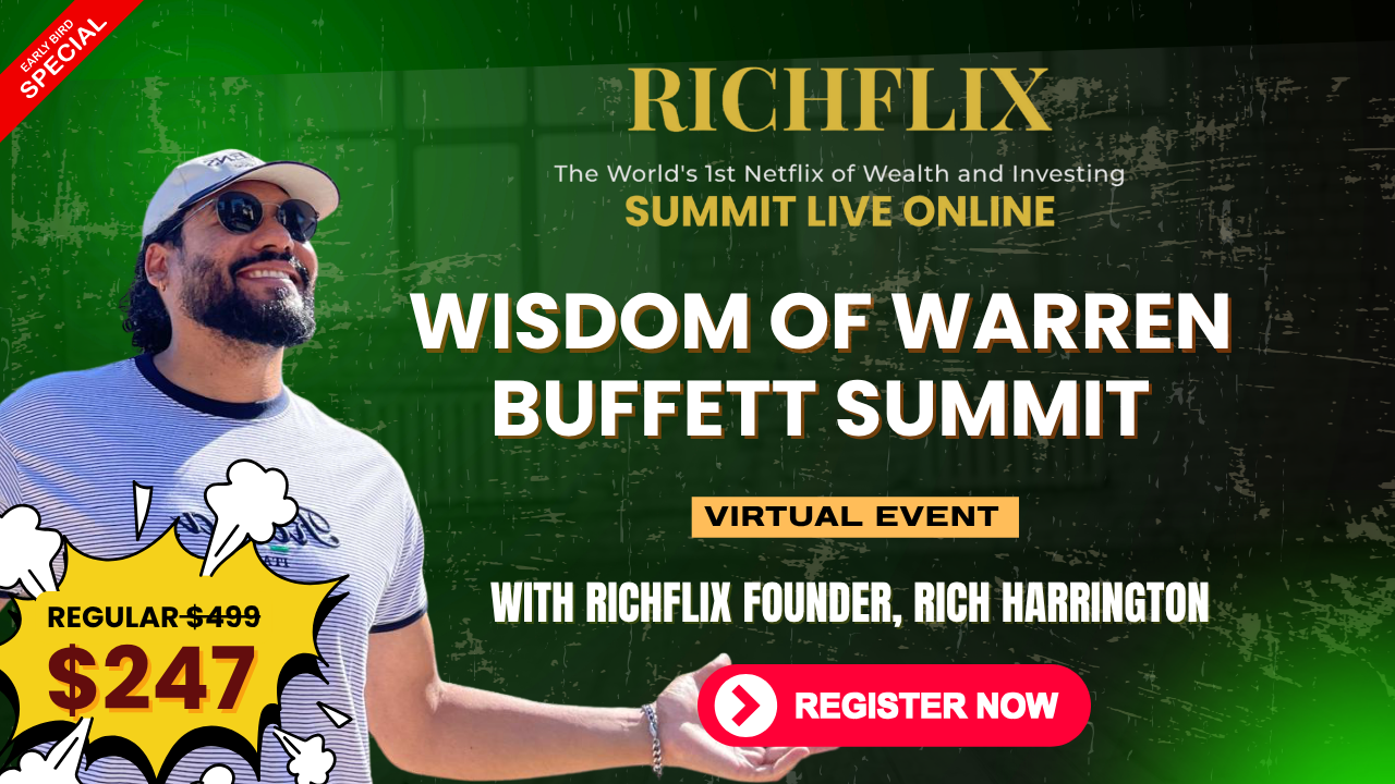 Richflix Inc. presents this once in a lifetime opportunity FULL ONE DAY INTENSIVE to learn the Wisdom of Warren Buffett presented by Forbes featured Investor and Philanthropist, Richard Harrington.